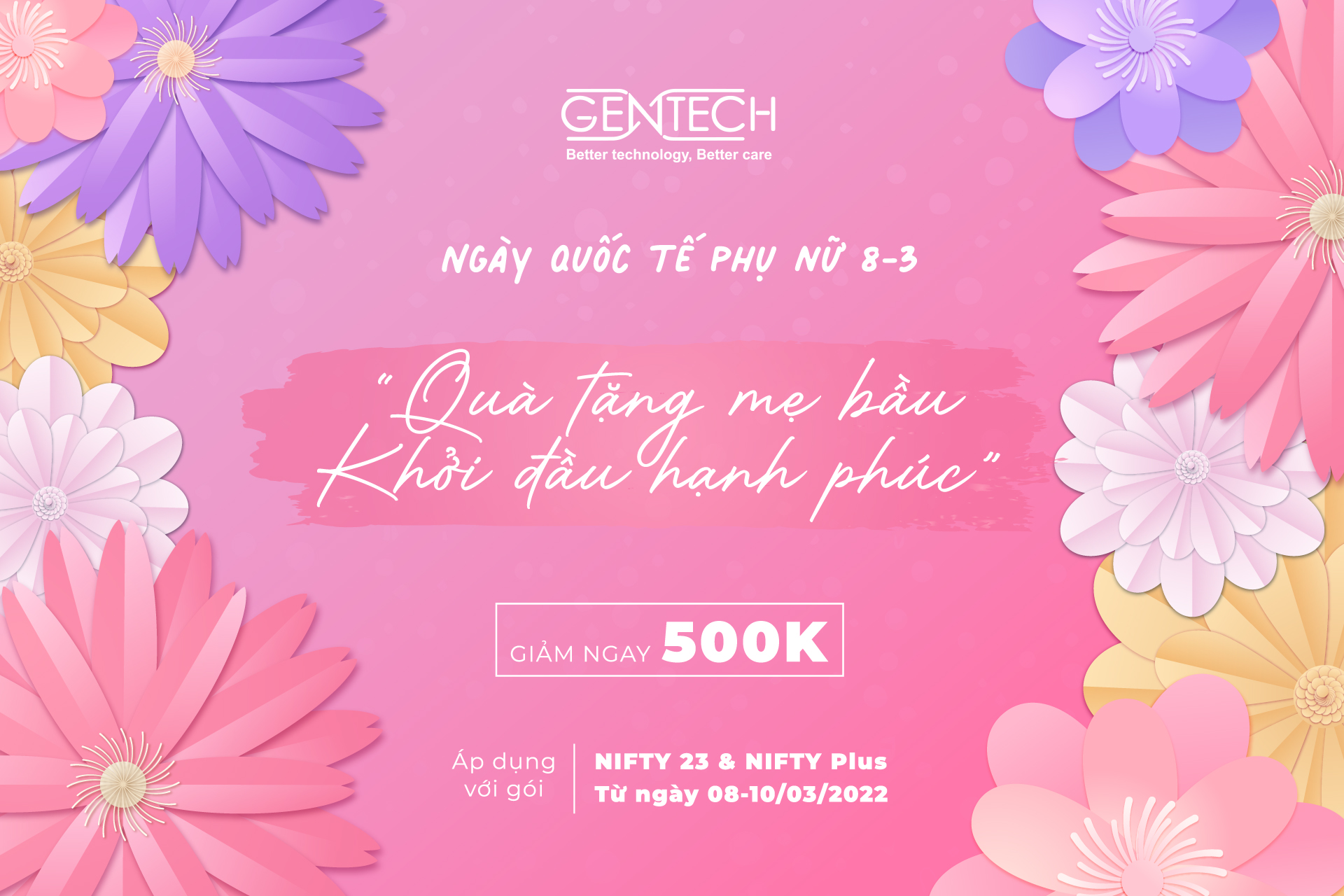Chào mừng ngày Quốc tế phụ nữ 8/3, thay lời chúc yêu thương gửi đến các mẹ bầu GENTECH xin trân trọng thông báo chương trình ưu đãi đặc biệt dành các mẹ bầu như sau:
