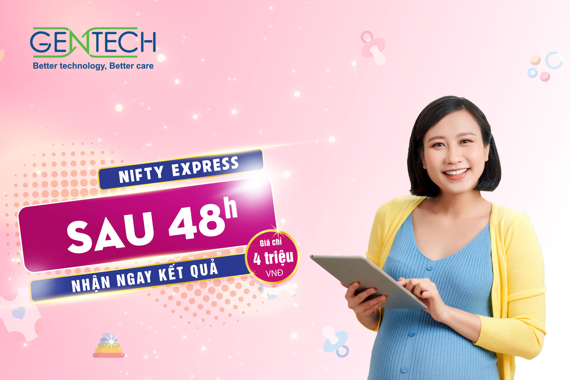 GENTECH hiểu rằng mẹ đang đếm từng ngày để được sàng lọc cho con, để biết con vẫn đang lớn lên khỏe mạnh.Vì vậy, để đổi một thai kỳ hạnh phúc cho mẹ, thay vì phải lo lắng suốt 9 tháng 10 ngày, GENTECH đã mở rộng phòng xét nghiệm di truyền đạt chuẩn Quốc Tế, đủ điều kiện sẵn sàng thực hiện xét nghiệm #NIFTY_EXPRESS, trả kết quả ngay sau 48 giờ.